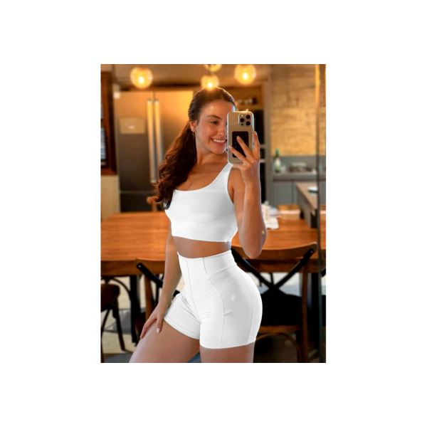 Conjunto Academia Short Bolso Top Duplo Regata Poliamida Corrida Roupa de Treino Feminina Cós Alto