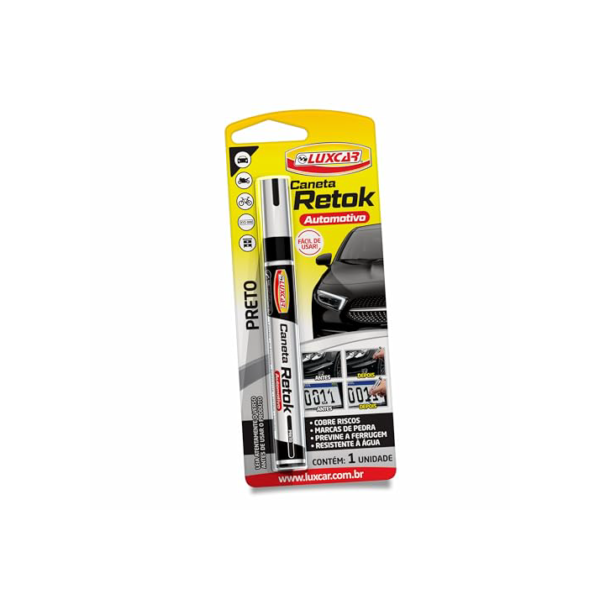 A Caneta Retok Tira Riscos Luxcar é o seu novo aliado na hora de manter seu veículo em perfeito estado. Com um marcador permanente de alta qualidade, essa caneta possui tinta automotiva envernizada que traz brilho e durabilidade. Ideal para você que deseja disfarçar riscos e imperfeições no seu carro, moto ou bicicleta.
